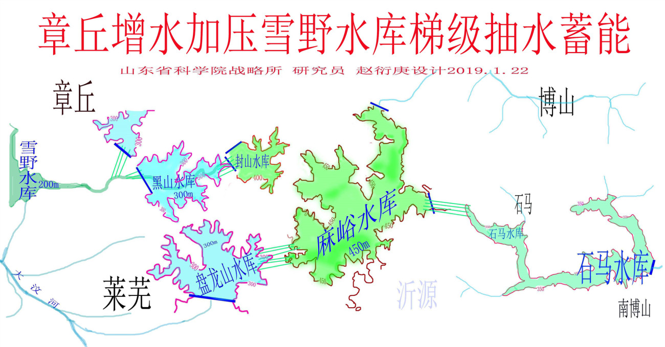 一、 泰山山脉的泰山、鲁山、沂山、蒙山超过1000m的主峰,多为花岗岩或寒武纪岩石出露,山区内中小水库众多,适宜发展梯级水库,各级都安装抽水蓄能,实行水水相连的梯级抽水蓄能,调峰形成流域水循环,是大量山区水库湿地进山。梯级抽水蓄能总扬程,是各级水库的扬程叠加,极顶水库和河谷水库的蓄水面积相应增加,可以形成大型甚至巨型抽水蓄能电站。相应可逆式抽水蓄能的高扬程小流量,转变为低扬程大流量,智能电网支持抽水蓄能常规技术的发展,也是抽水蓄能单位投资强度的大幅度降低。