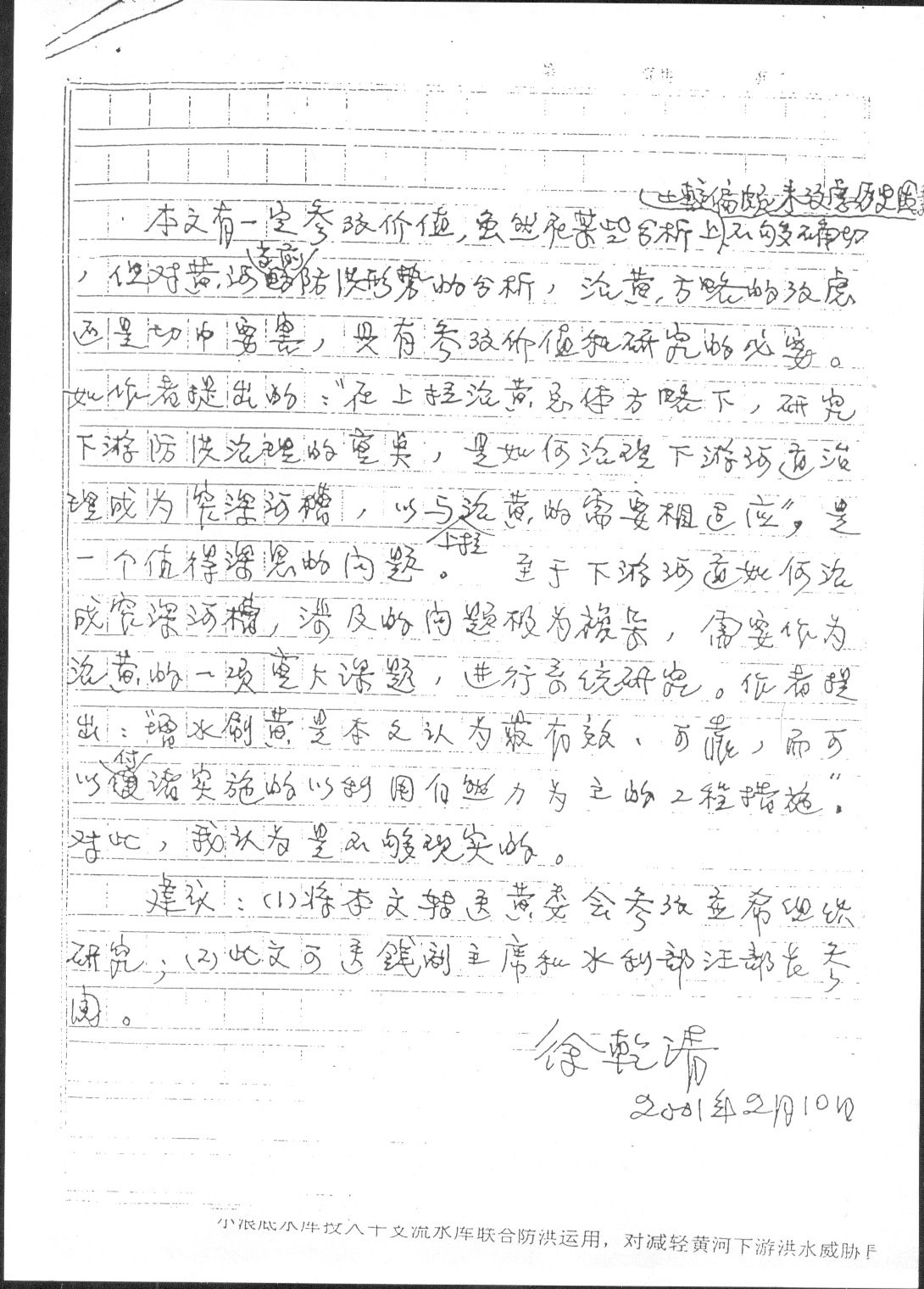 水利部原副总工程师徐乾清院士批示(影印件)